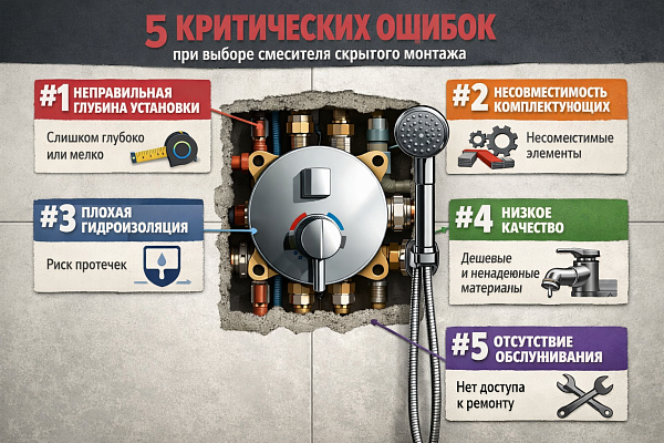 Смесители скрытого монтажа — это главный тренд 2025-2026 годов. Мы в САНСТОП видим, как растет спрос на минимализм, но часто сталкиваемся с тем, что покупатели выбирают систему «по картинке», забывая о технической части. Команда экспертов разбирают 5 критических ошибок, чтобы ваша ванная радовала годами.